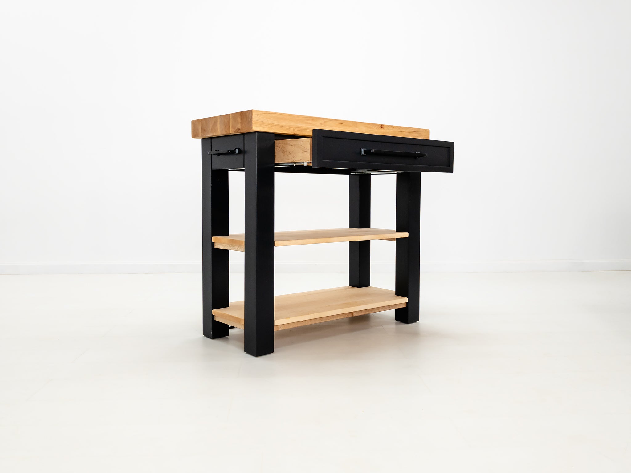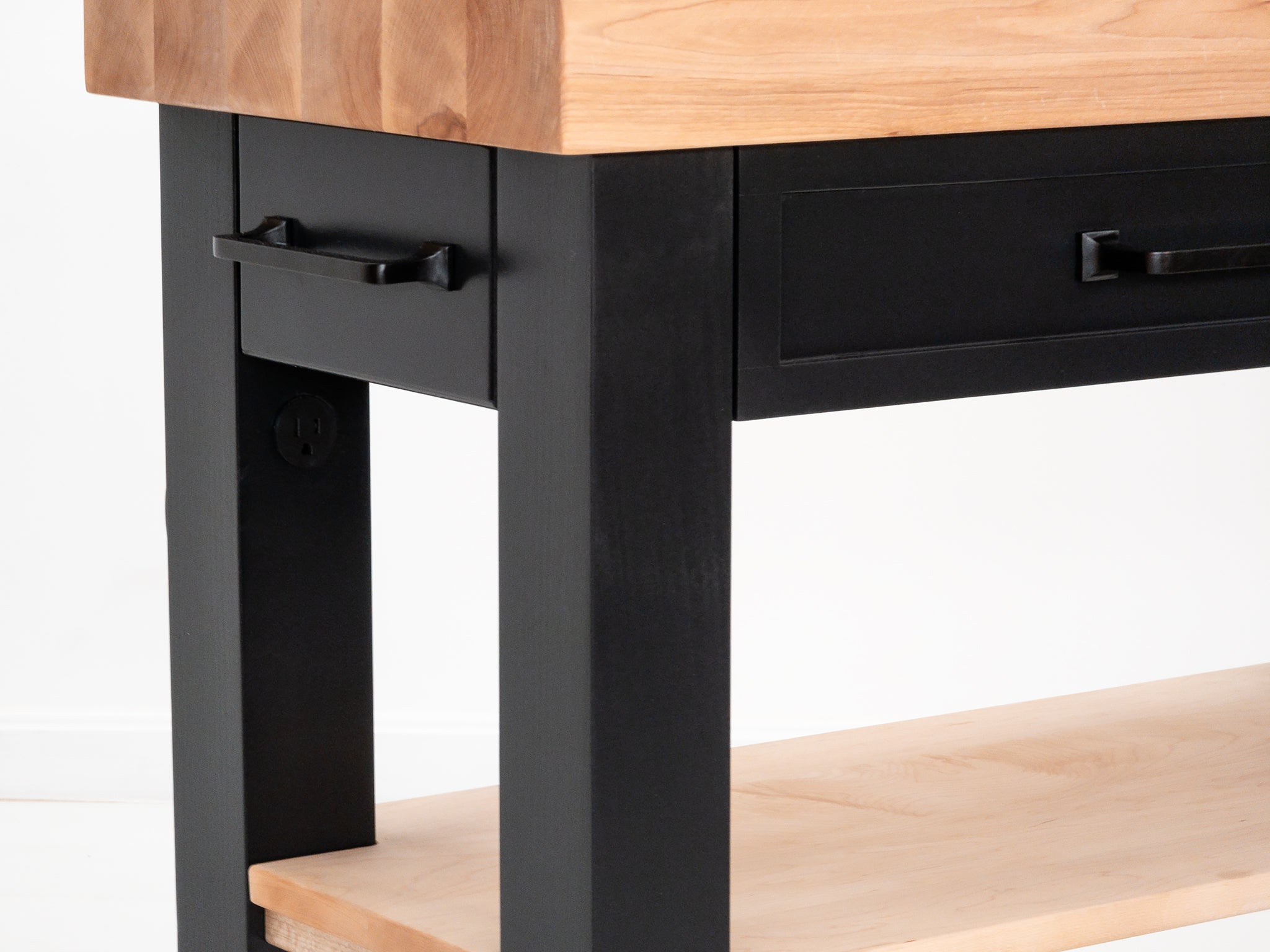 Each piece is made to order in our Connecticut workshop. Measurements are approximate, and slight variations may occur, reflecting the unique nature of handcrafted furniture. Natural wood expands and contracts with the seasons. Due to the handcrafted process, butcher block thickness may vary by approximately ± ⅛ inch from sanding and finishing.