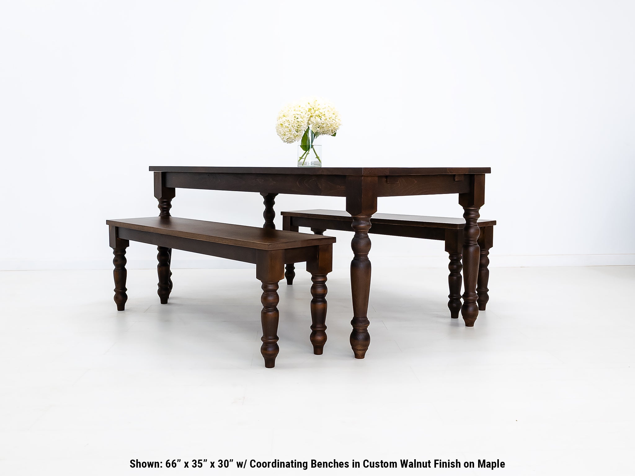 Yes! We build both full-length and tuck-in benches designed to coordinate with your dining table. Let us know your ideal size and style, and we’ll create a bench that complements your space.