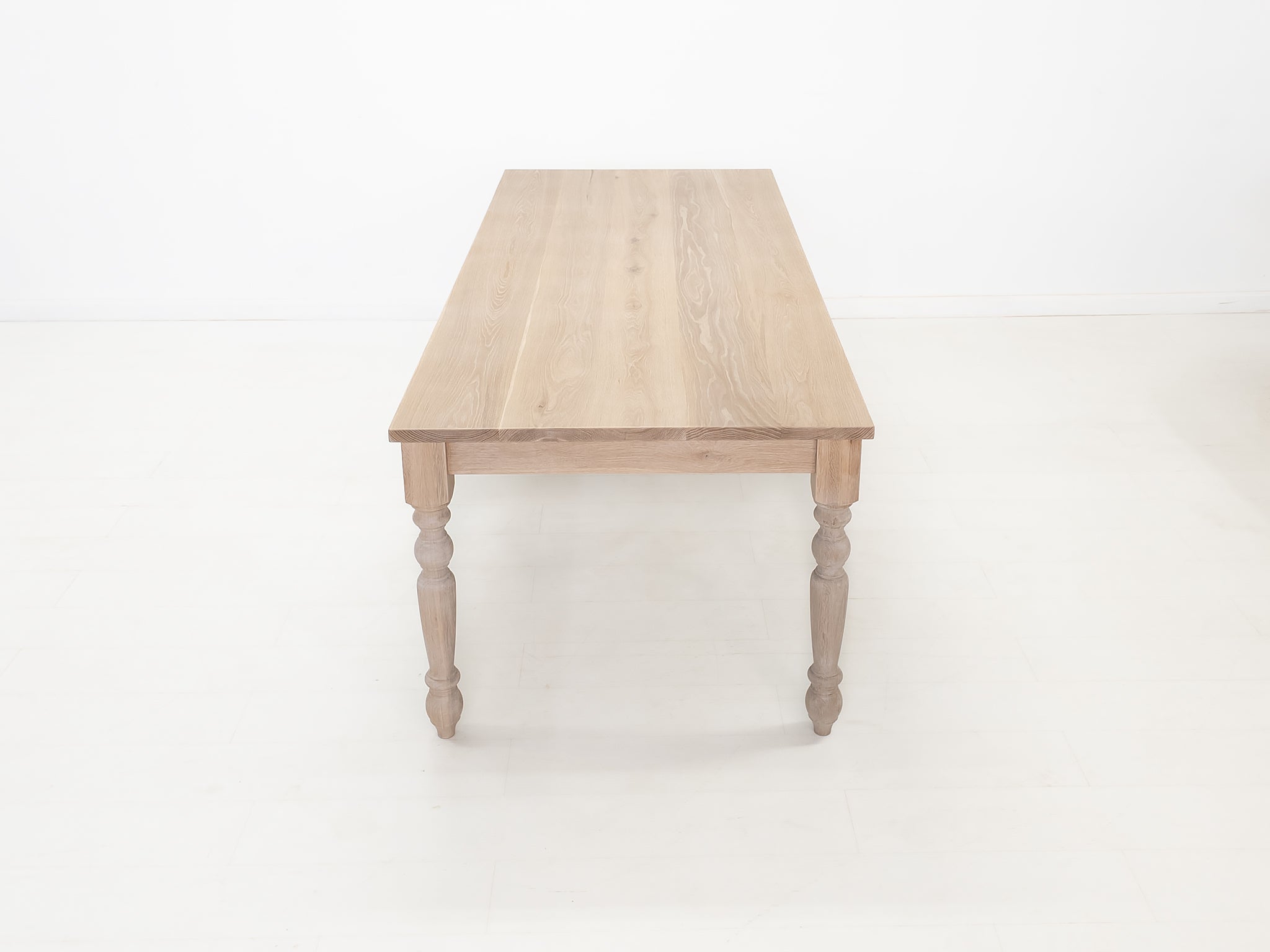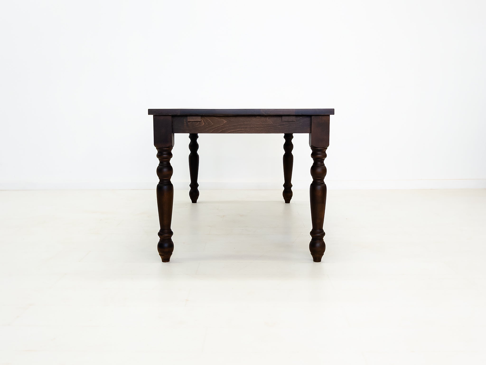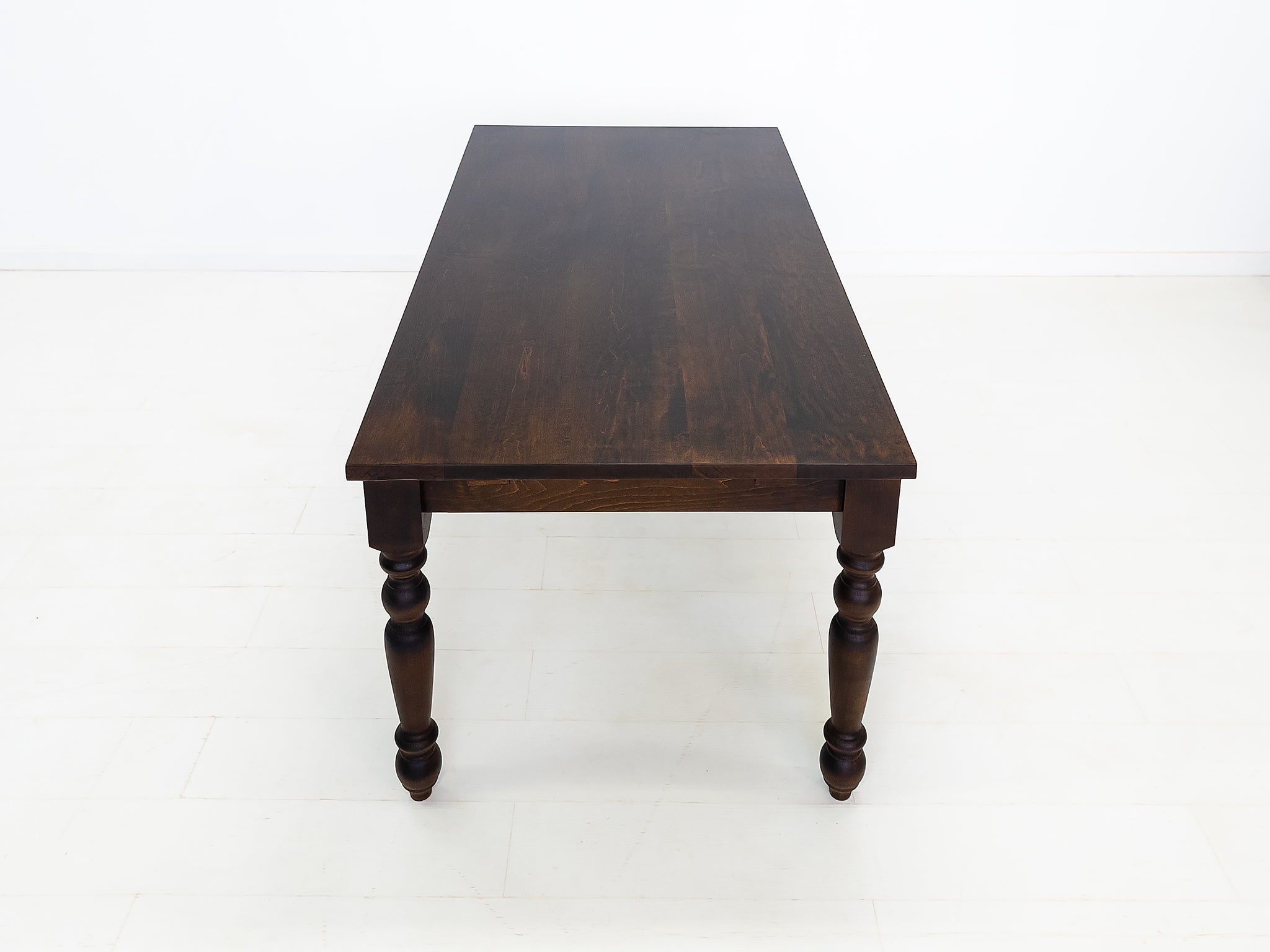 The TESS dining table is built from solid American hardwood, featuring a 1¼-inch thick plank-style top and classic turned legs. Its design is simple, sturdy, and timeless—made to serve as a gathering place for years to come.