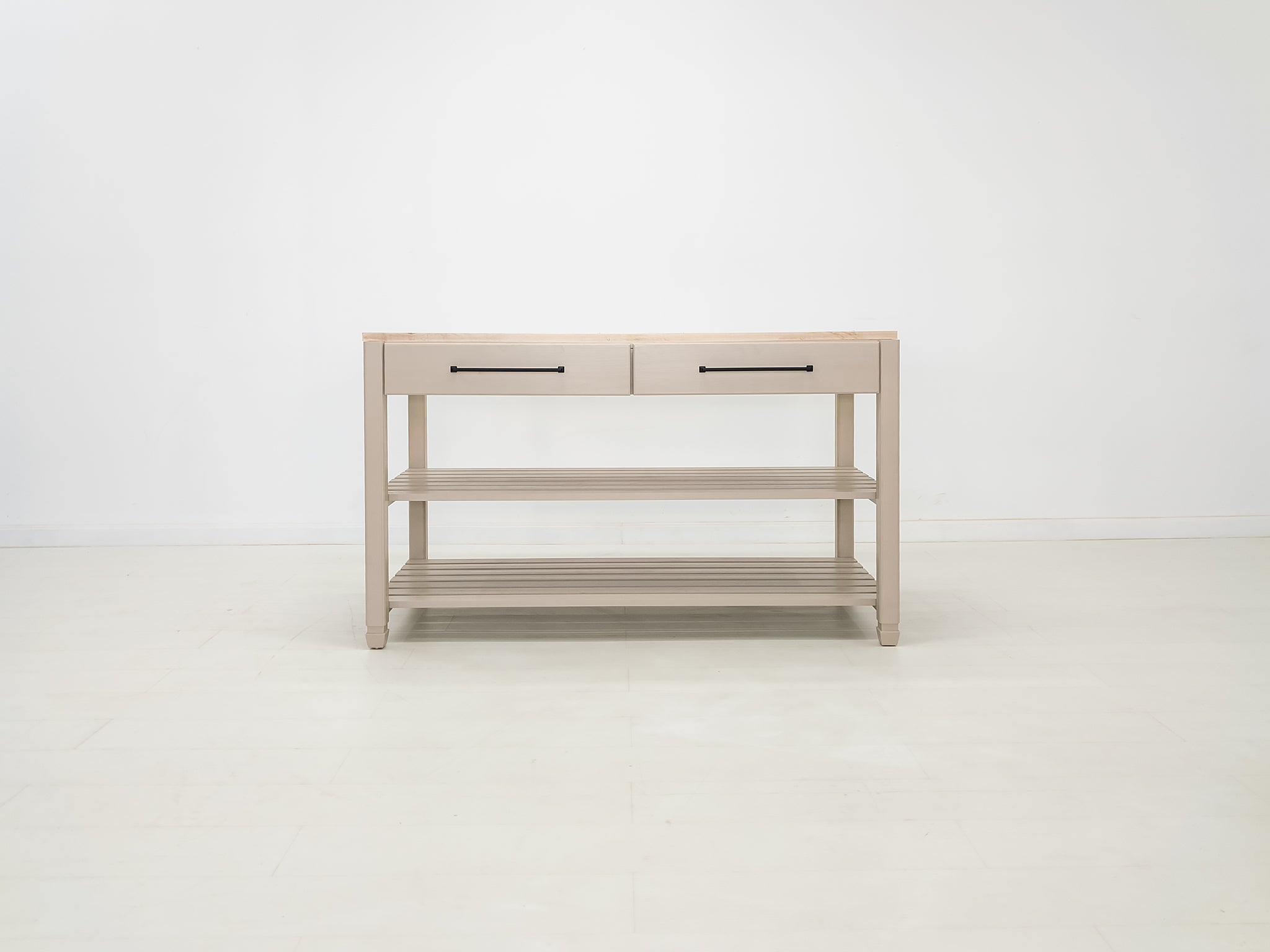 Each piece is made to order in our Connecticut workshop. Measurements are approximate, and slight variations may occur, reflecting the unique nature of handcrafted furniture. Natural wood expands and contracts with the seasons. Due to the handcrafted process, butcher block thickness may vary by approximately ± ⅛ inch from sanding and finishing.