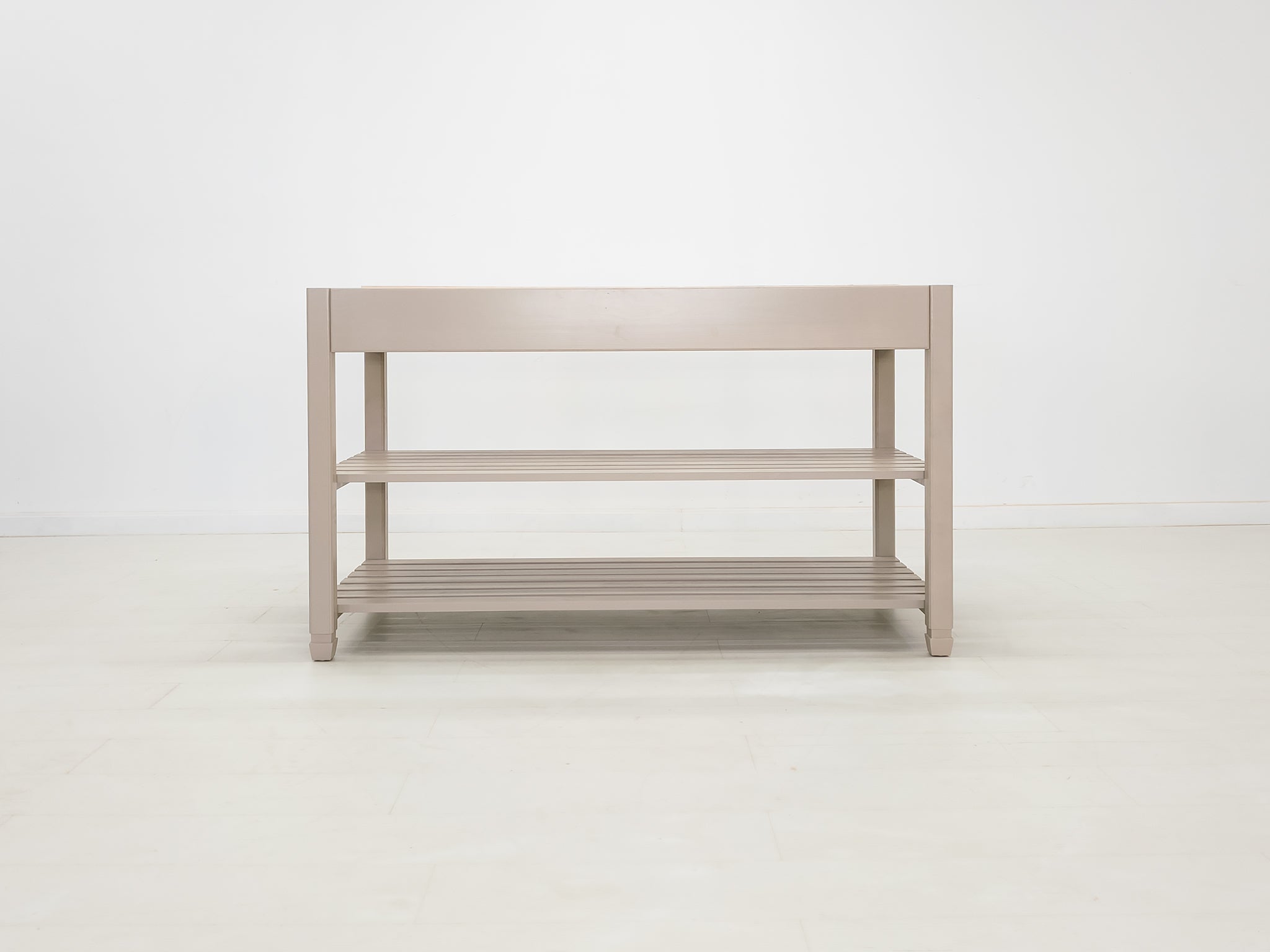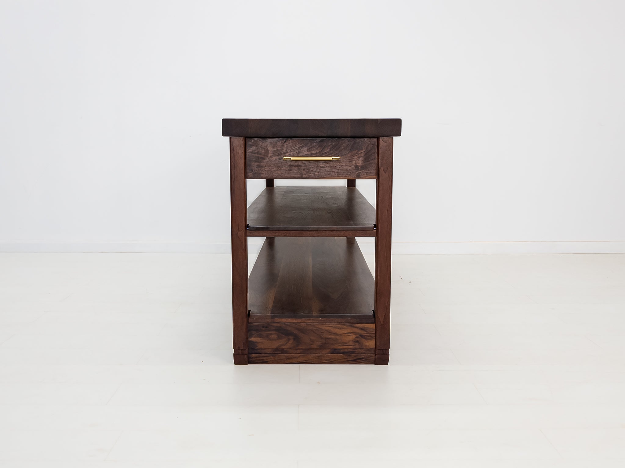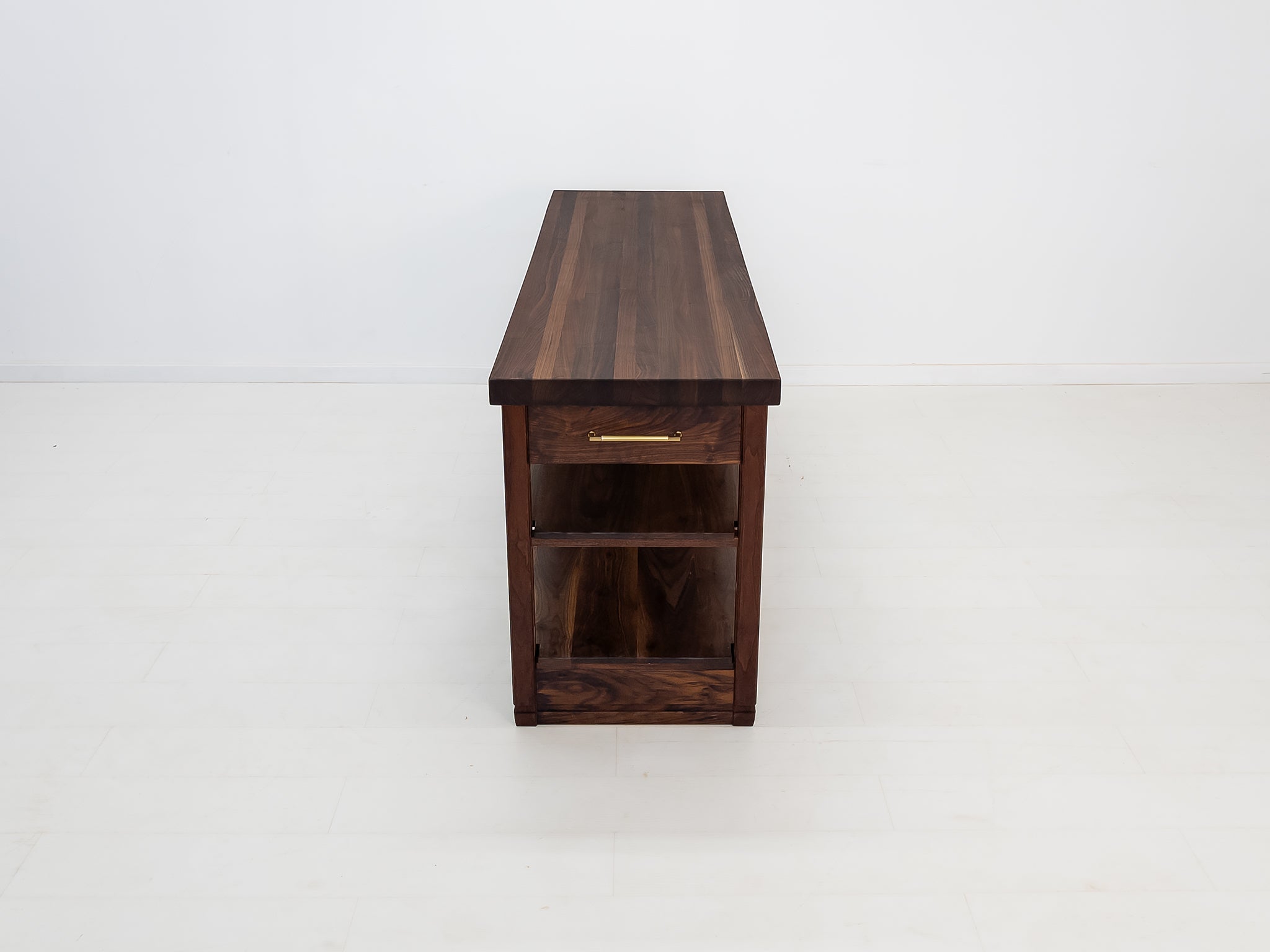 - Two solid walnut shelves for storage or display